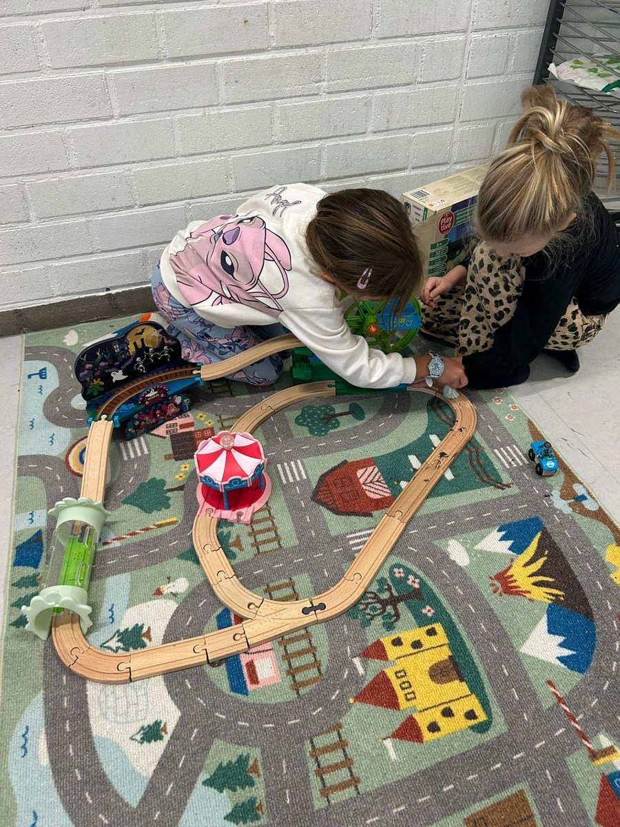 De kinderen van groep 1/2 hebben hard gewerkt aan het thema. We zijn de week begonnen met het in elkaar zetten van de kermistreinbaan, waar onwijs veel mee gespeeld is! Ook hebben we geoefend met de klanken. De woorden die deze week centraal stonden, waren de woorden van het blikgooien: mik, mis, blik, blij, mooi, leuk en win.