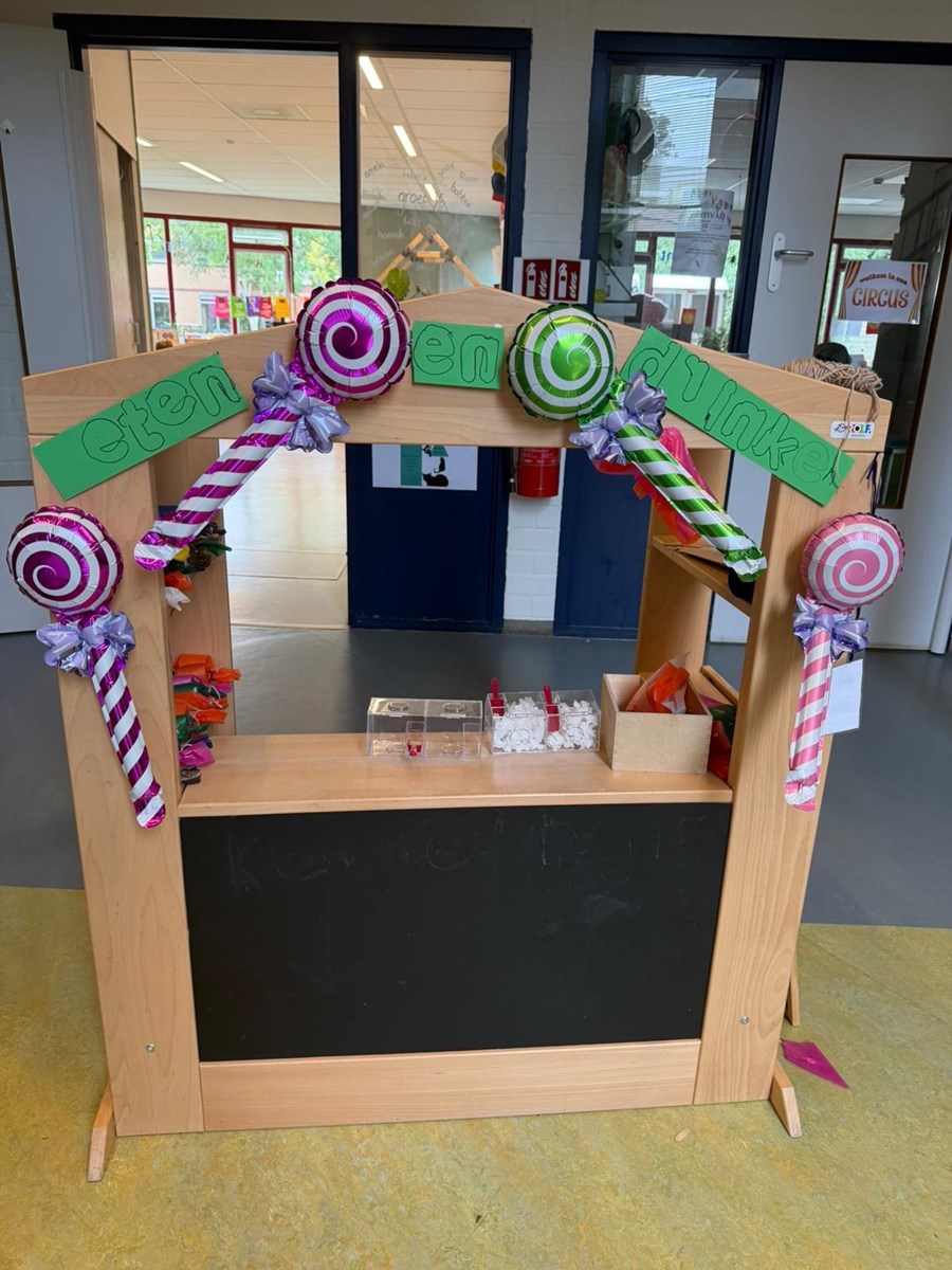 En als laatste hebben we een extra kraampje toegevoegd, waarbij de kinderen een eet- en drinkkraam hebben gemaakt met snoepjes, popcorn, suikerspin en noem het maar op.