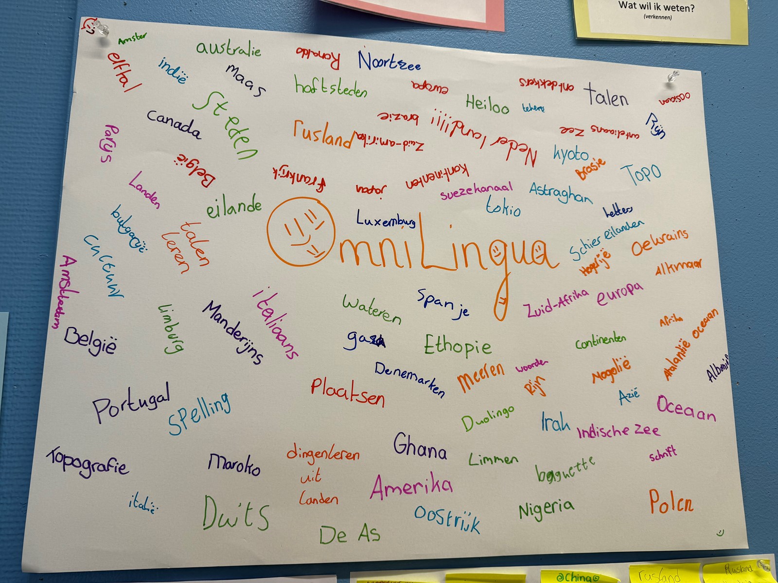 Na de vakantie zijn we gestart met het nieuwe thema. OmniLingua! We gaan onderzoek doen naar talen. We hebben op een wereldkaart allemaal plakkers geplakt met welke taal er in dat land wordt gesproken.