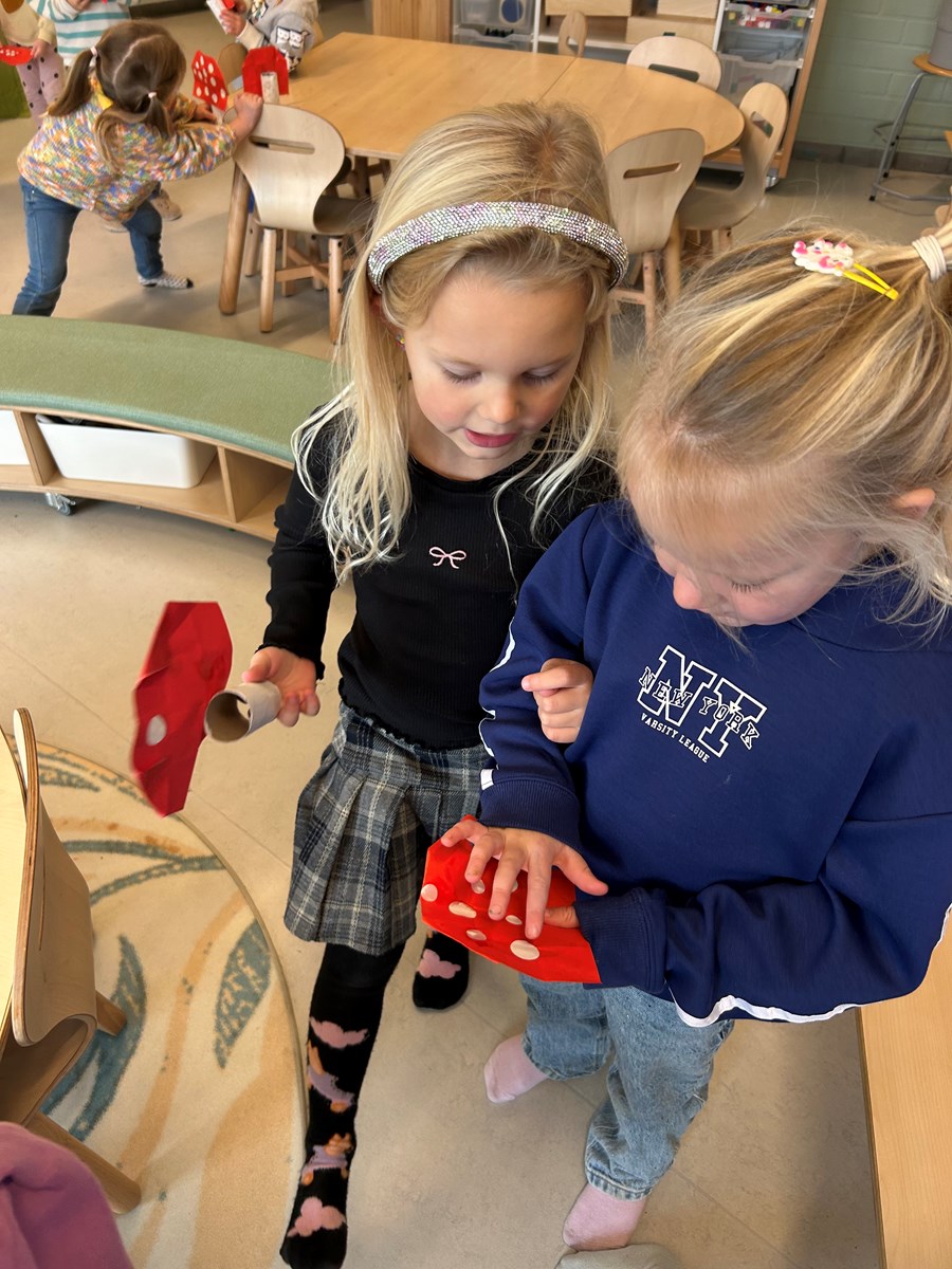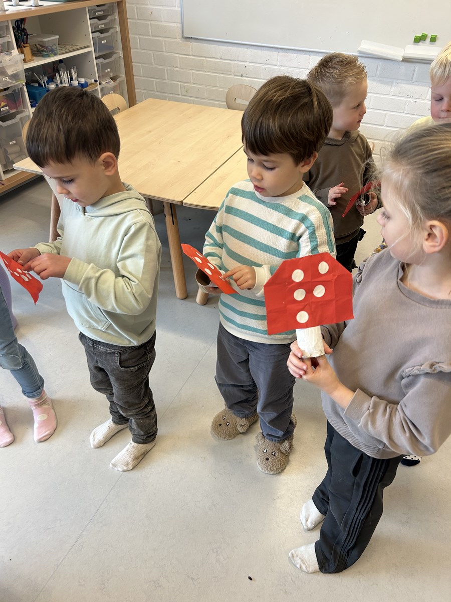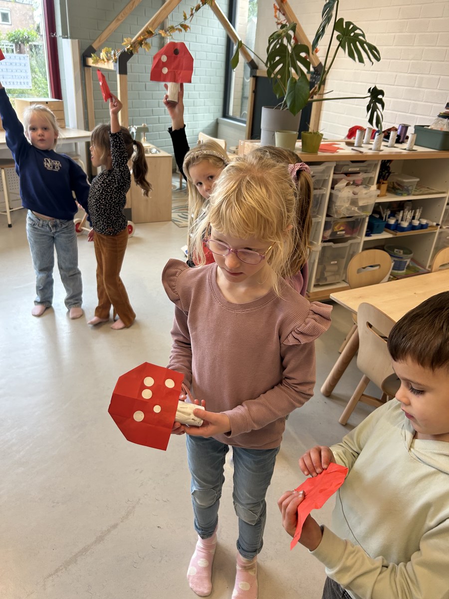 Herfst, herfst… Wat hebben we lekker geknutseld, gezongen, gerekend en gelezen! Het herfstliedje werd aangeleerd en begeleid door dwarsfluit, blokfluit of ukelele door juf Floortje. Het woord mos hing aan de lijn en later natuurlijk het woord herfst. We bedachten zelf woorden met de o en kwamen erachter dat we van het woordje mos heel veel nieuwe woorden konden maken met de letters die we al kennen. Mos, som, ros, los, mol… etc etc. We hebben paddenstoelen gevouwen en met de stippen gerekend. Hoeveel stippen heb jij op je paddenstoel? Wie heeft meer? Wie heeft minder? Wie hebben er evenveel? Hoeveel stippen hebben jullie samen? Wie heeft de aller meeste? En wie de minste? Enzovoort. Vandaag was juf Christa in de klas en hebben we met wasco een mooie herfsttekening gemaakt. Namens meester Sam, juf Christa, juf Indy en juf Floortje een heel fijn weekend!