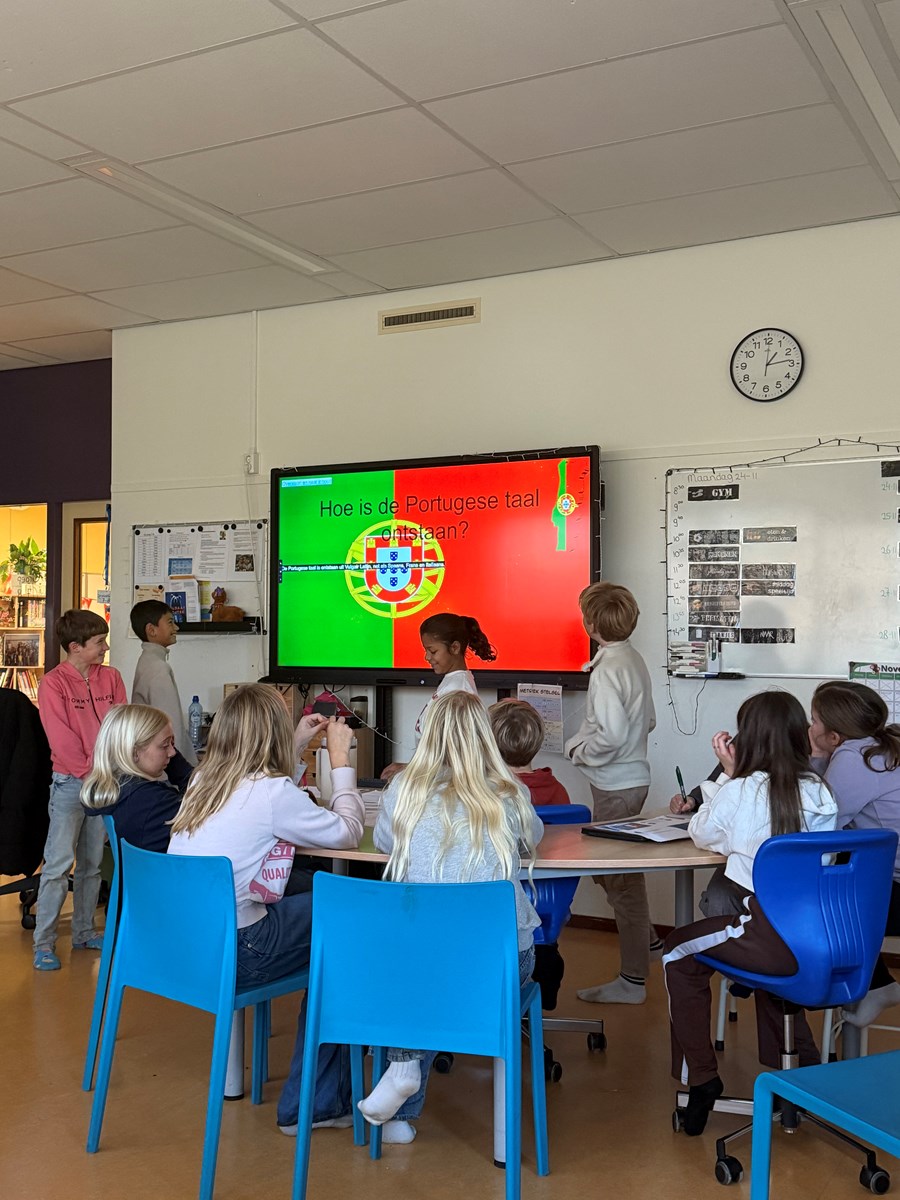 Het thema leeft enorm in de klas. Alle kinderen hebben een presentatie gemaakt over een taal. Daar hadden we samen onderzoeksvragen voor opgesteld. Naast de presentatie hebben er ook groepjes een filmpje gemaakt. In dat filmpje hebben ze gepraat in de taal. Vrijdag hebben alle groepjes aan de klas gepresenteerd. Elke keer was er een groepje die feedback ging geven. Op het feedbackformulier stonden alle vragen en de kinderen gingen de antwoorden opschrijven. 🇩🇪🇪🇸🇾🇪🇫🇷