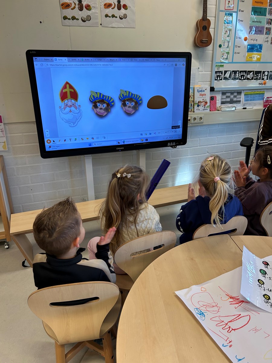 Ook hebben we ritmes geklapt. Misschien weten de kinderen de ritmes van piet, sin-ter-klaas, pe-per-noot en stoom-boot nog wel.