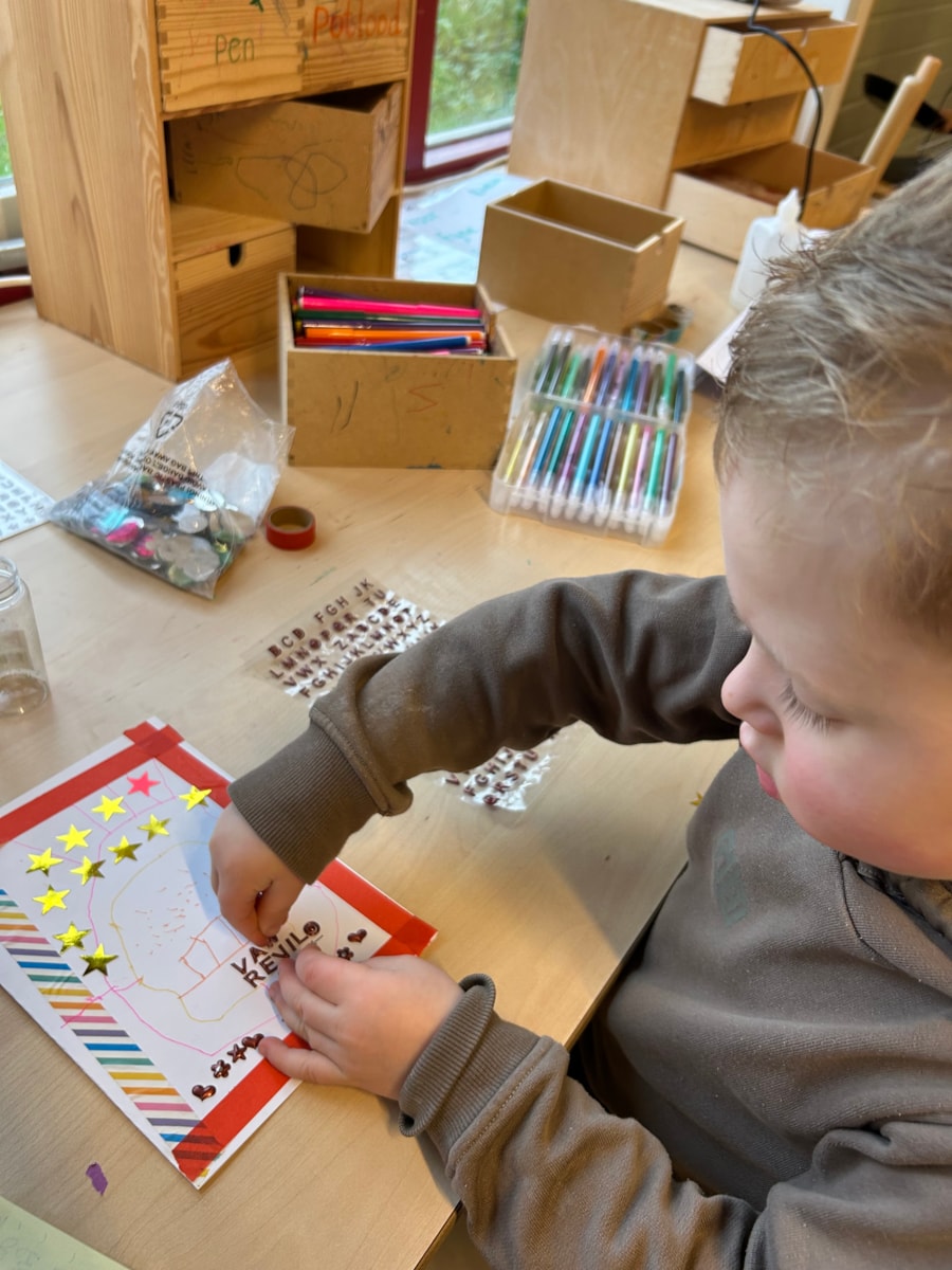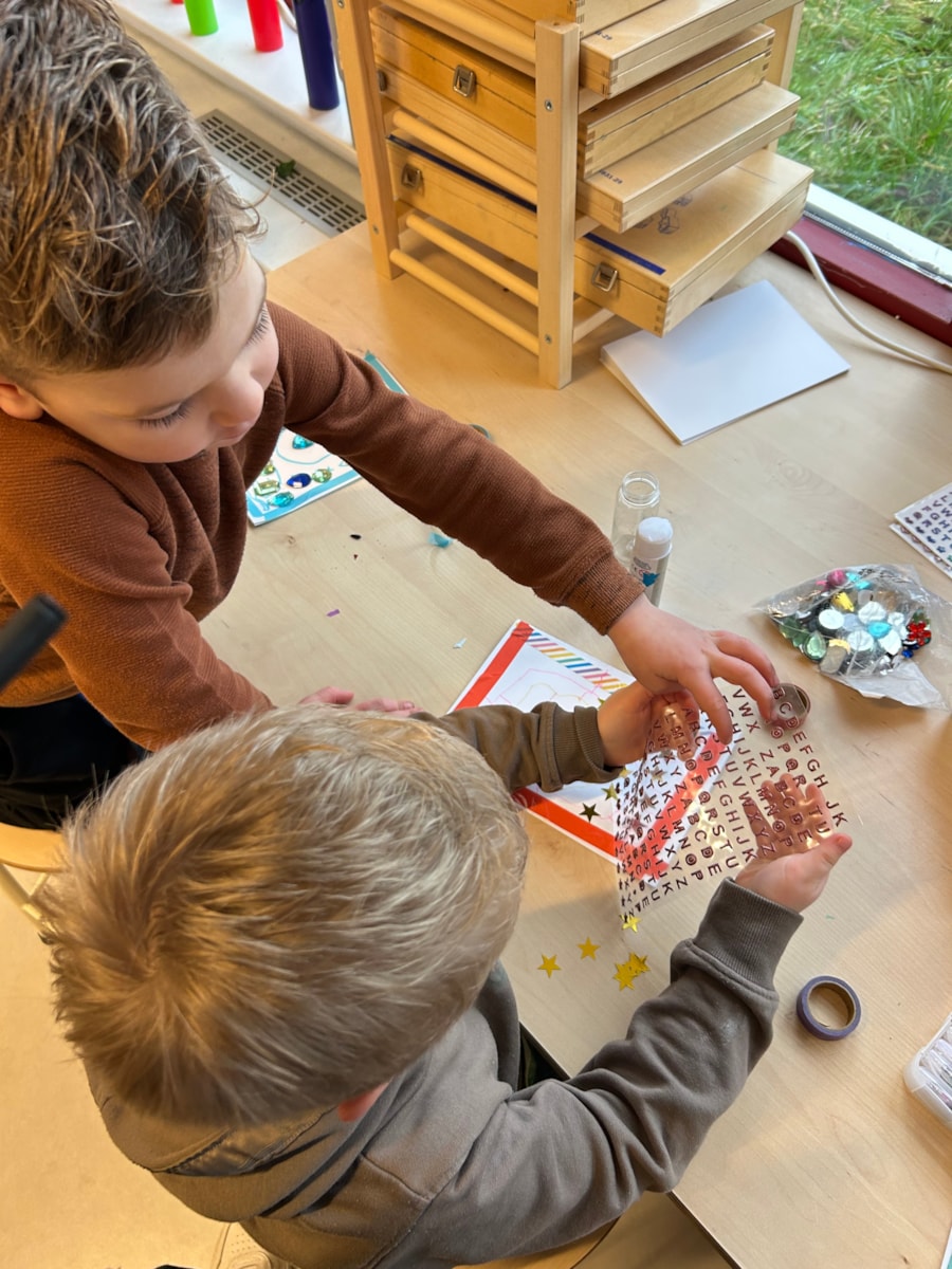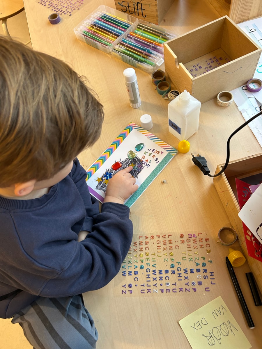 Nadat we de hele week hard gewerkt hadden aan onze kerstkaarten was het dan eindelijk zover; tijdens het kerstdiner mochten we de kaarten aan elkaar geven. Leuk! Er komen foto’s van de geschreven kaarten in het portfolio dus jullie kunnen het werk van jullie eigen kind later ook nog bewonderen.