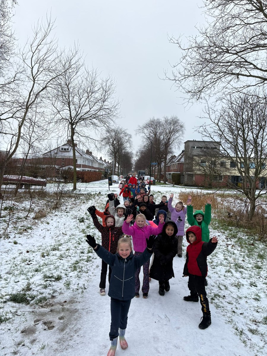 Woensdagochtend gingen de kinderen samen naar het Oosterbos om te genieten van het unieke winterweer. Want sneeuw is net als zand en water het mooiste speelgoed dat er bestaat! Het zorgt ervoor dat je lekker gaat bewegen, dat je fantasie en creativiteit volop ruimte krijgt en dat je elkaar nodig hebt om die grote sneeuwpop of iglo te bouwen of die spannende afdaling op de slee te maken. Met rode wangen en vol verhalen kwamen de kinderen terug op het plein, waar ouders vanuit een echte marktkraam warme chocomelk en een lekker koekje uitdeelden. Wat een feest en wat gezellig op deze manier spontaan samen met kinderen en ouders het nieuwe jaar af te trappen!