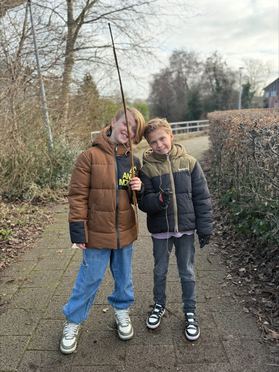 We zijn begonnen met het maken van onze kampvlag. Daarnaast hebben de kinderen volop hutten gebouwd en daarbij vishengels gemaakt en uitgetest.