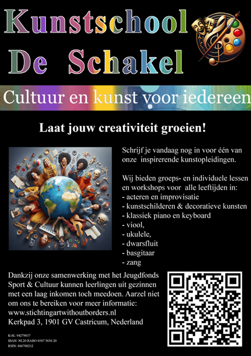 Kunstschool De Schakel is officieel ondergebracht bij de ANBI Stichting Art Without Borders.