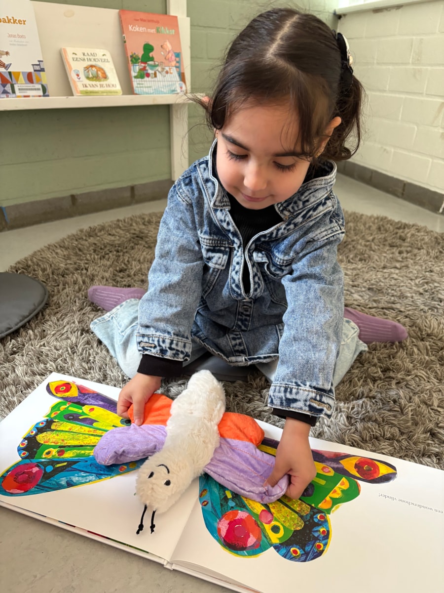 Ook Rupsje Nooitgenoeg blijft favoriet. Een aantal kinderen kent het boek bijna uit hun hoofd en als de vlinders erbij gepakt worden… ja, dan is het plaatje compleet.