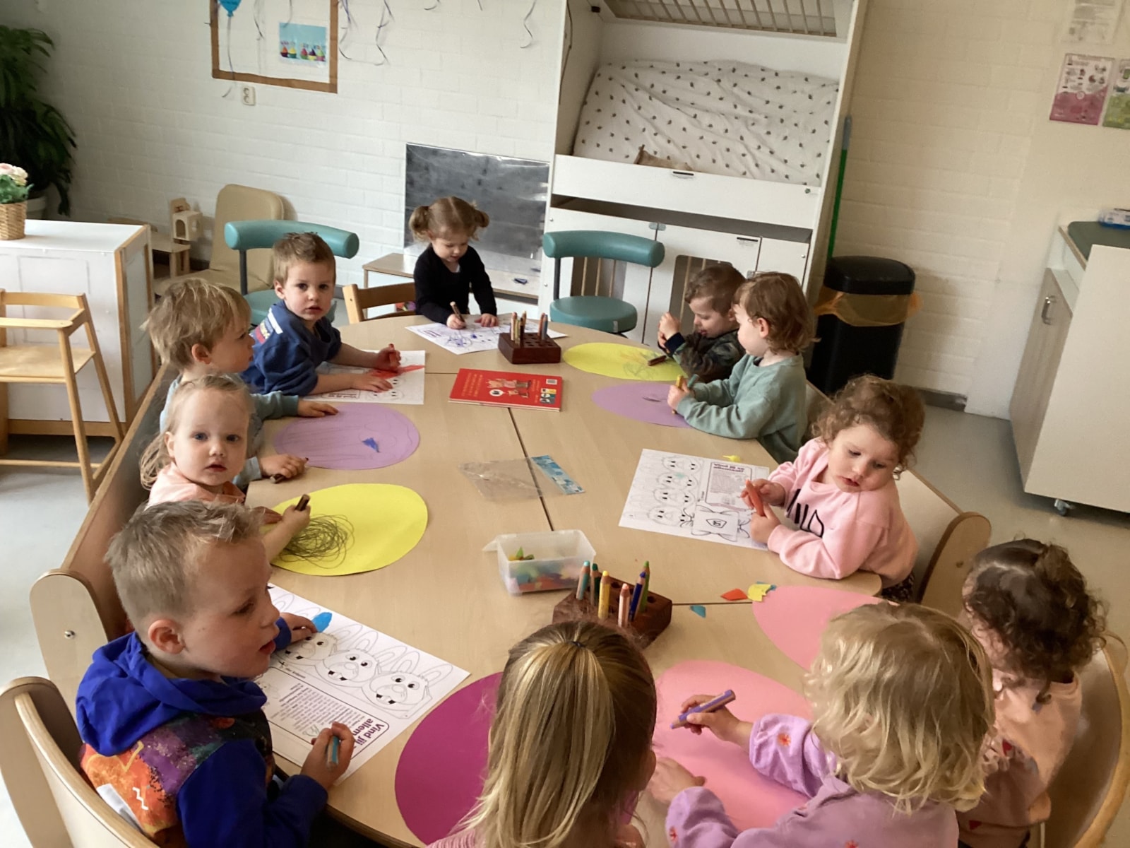Het is bijna Pasen! Daar horen natuurlijk paaseieren bij en die hebben de peuters geknutseld. De kinderen gingen helemaal los met kleurtjes, balletjes en veren – en oh, wat een mooi resultaat!