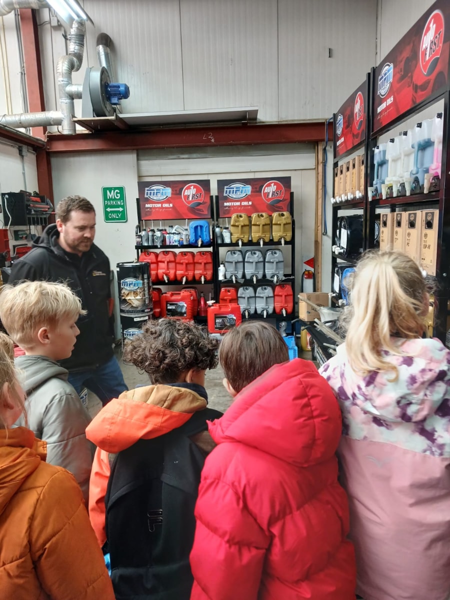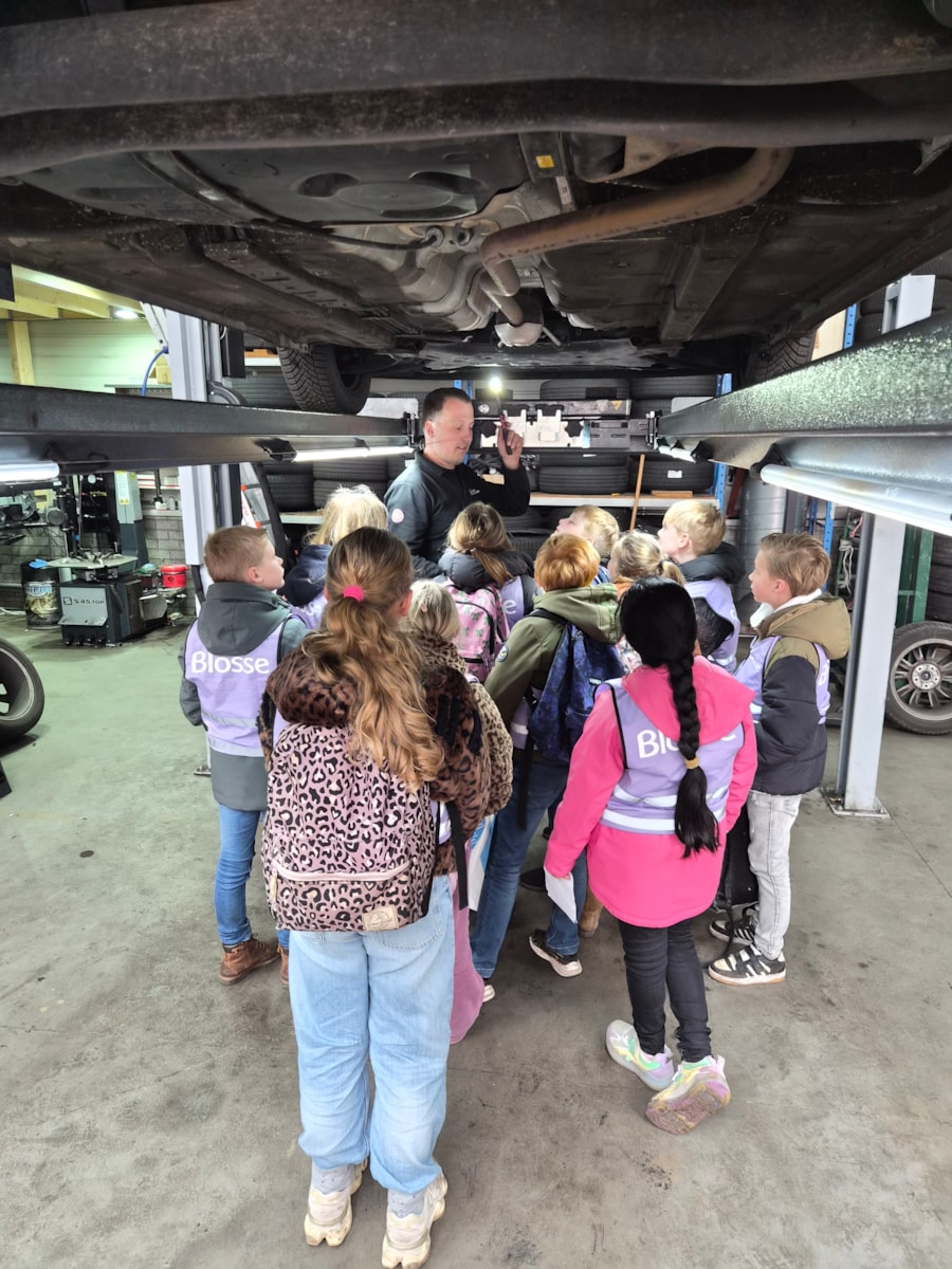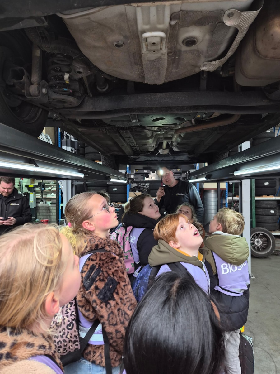 Ook hebben we gezien hoe remvloeistof wordt bijgevuld en mochten we onder een auto op de brug kijken en hebben we geleerd wat een APK is.