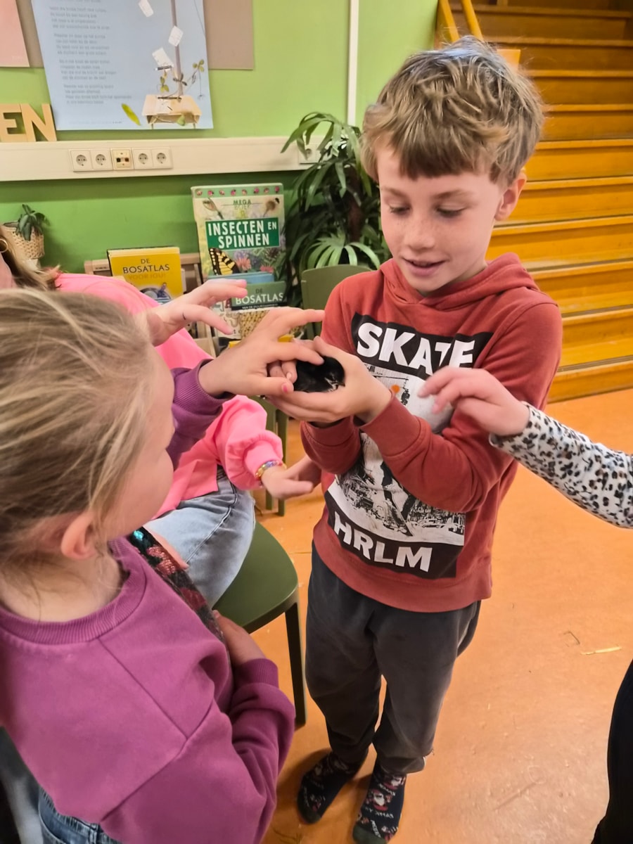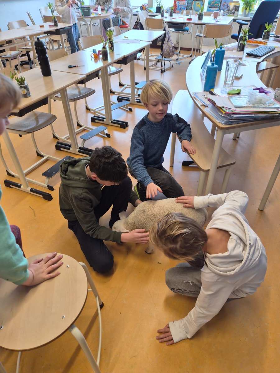 Aansluitend deden we een paascircuit met allerlei activiteiten. Er werd geknutseld, muziek gemaakt, bingo gespeeld en een rekenspeurtocht gedaan. Ook konden de kinderen knuffelen met lammetjes en kuikens, wat natuurlijk een groot succes was.