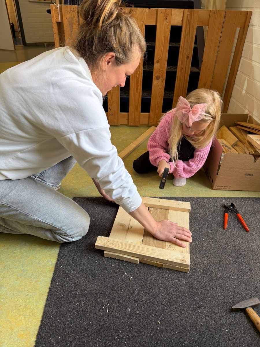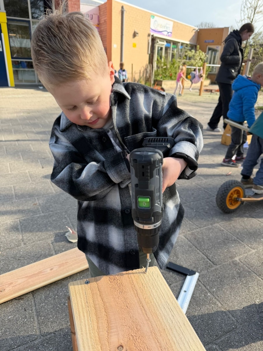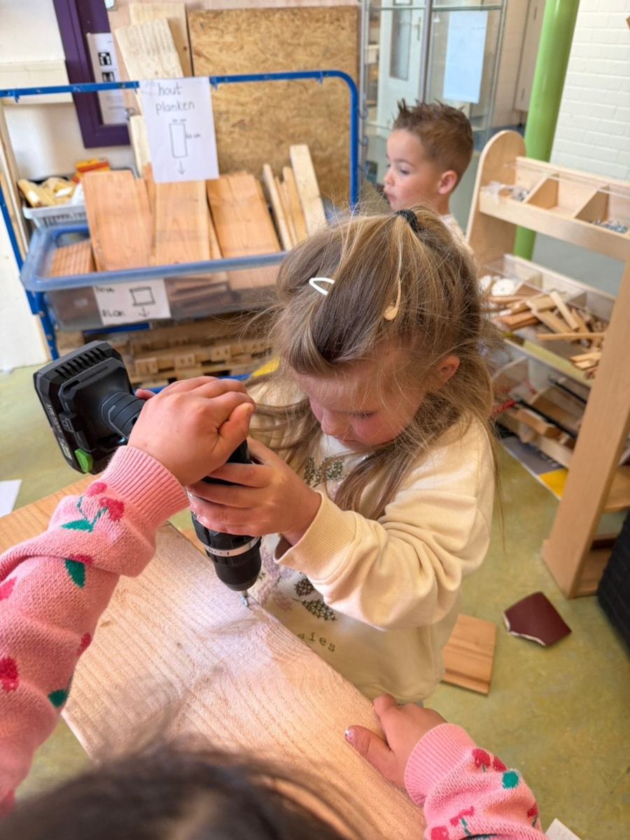 Het is prachtig om te zien met hoeveel focus en plezier de kinderen aan de slag gaan. Of ze nu geconcentreerd een spijker in het hout slaan of trots hun tekening laten zien: het enthousiasme spat er aan alle kanten vanaf. We kunnen niet wachten om te zien wat voor prachtige eindresultaten er binnenkort nog ontstaan!