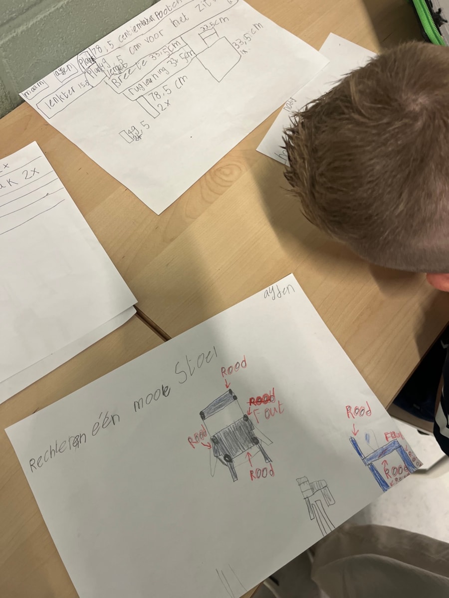 Deze week zijn de meubelmakers echt gestart met hun meubel voor de meubelmakerswedstrijd. We bekeken ons eerste werkstuk, een stoel voor je knuffel. Deze testten we op stevigheid, uiterlijk en handigheid. Eigenlijk was niemand tevreden en geen enkel meubelstuk kwam voldoende uit de test. De meubels vielen uit elkaar, waren wankel en niet stevig, of helemaal niet mooi. Een mooie kwestie om mee aan de slag te gaan. Hoe maak je een meubel stevig, mooi en handig? Er was een goed plan nodig, dus we zijn gestart met het ontwerp. Na het ontwerp verdiepten we ons in het maken van een bouwtekening. Vervolgens hebben we die zelf gemaakt van het eerder bedachte ontwerp. Vandaag maakten we een lijst van spullen die we nodig hebben. Welk hout en welke maten? En welk gereedschap? Welke verbindingsmaterialen? Maandag kunnen we aan de slag! We oefenden alvast gisteren en vandaag met het gebruik van de zaag en de hamer.