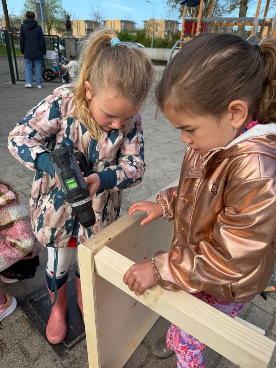 Eerder deze week was er eigenlijk maar één thema dat de boventoon voerde: klussen! De kinderen laten zien dat ze over flink wat bouwtalent beschikken. Er wordt volop: