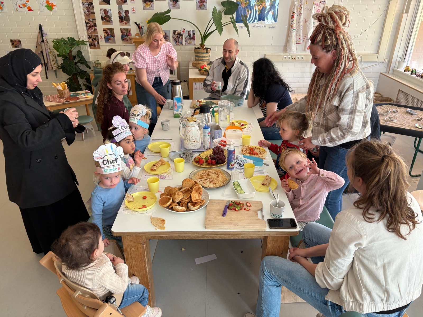 Deze gezamenlijke lunch was gelijk de afsluiting van ons thema. Ons volgende thema begint op 18 mei en dan gaan we ons verdiepen in de wereld van ’jonge dieren’.