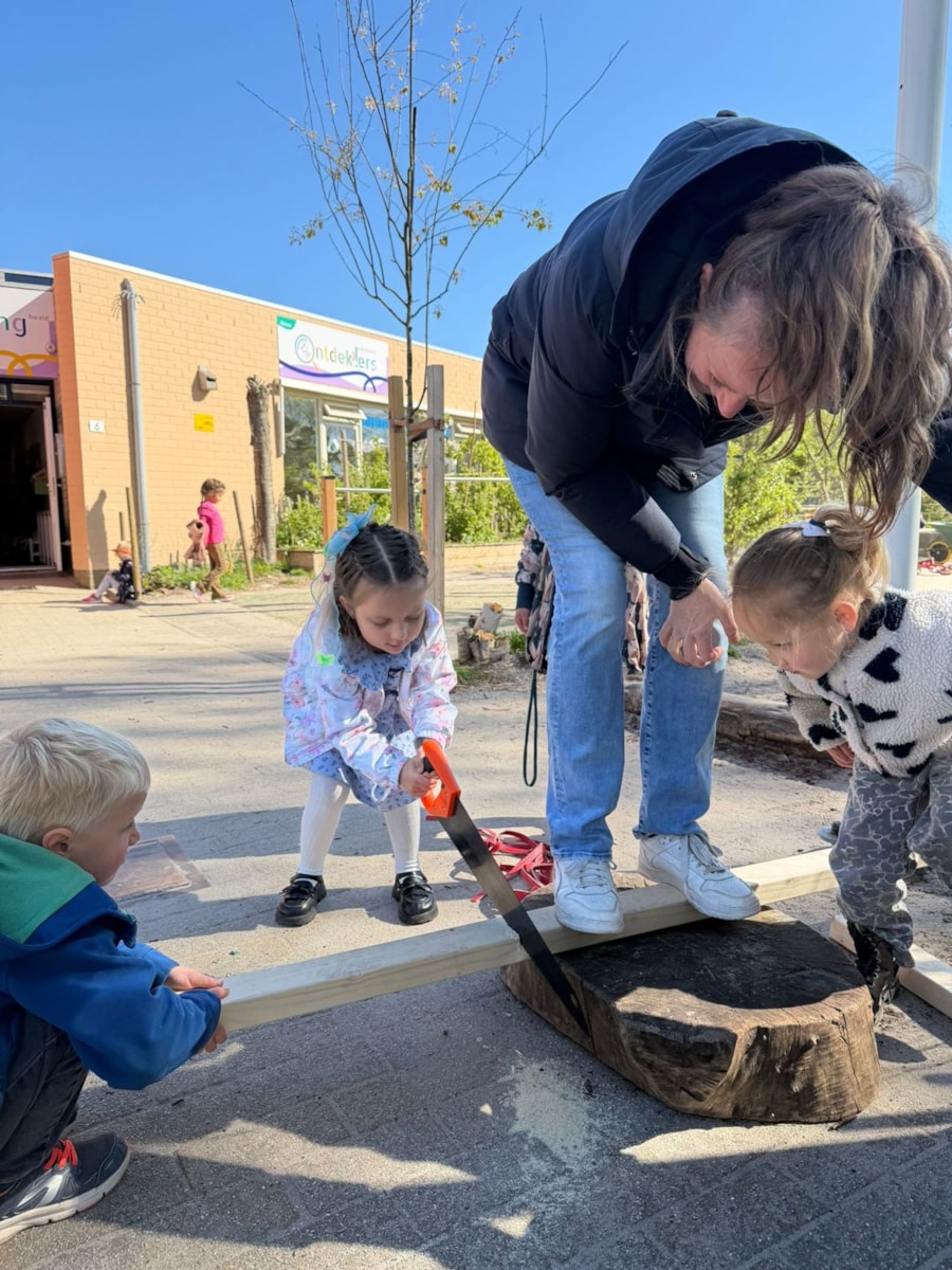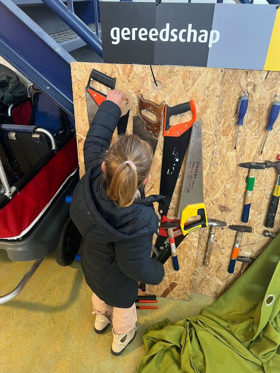 Met het prachtige weer van de afgelopen dagen konden we natuurlijk niet alleen maar binnenblijven. De gereedschapskisten gingen mee naar buiten en er is volop geklust en gespeeld in het zonnetje. De combinatie van vitamine D en hard werken deed de kinderen (en ons!) goed.