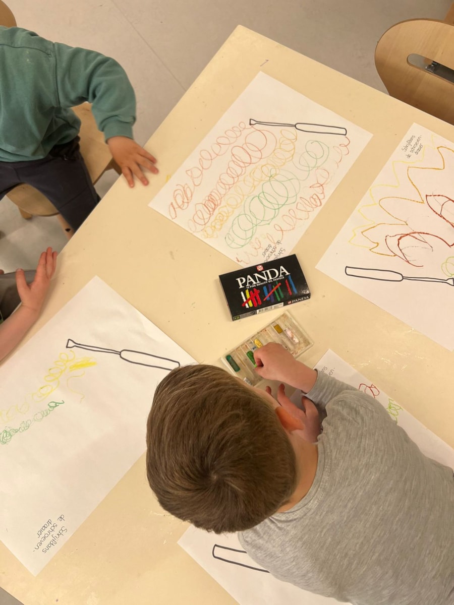 Wie zegt dat leren schrijven saai is? Wij hebben deze week de schrijfdans van de schroevendraaier gedaan. Met draaiende bewegingen trainden we onze fijne motoriek!