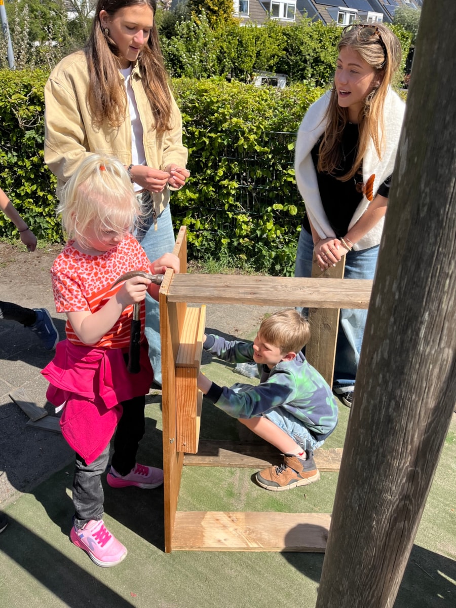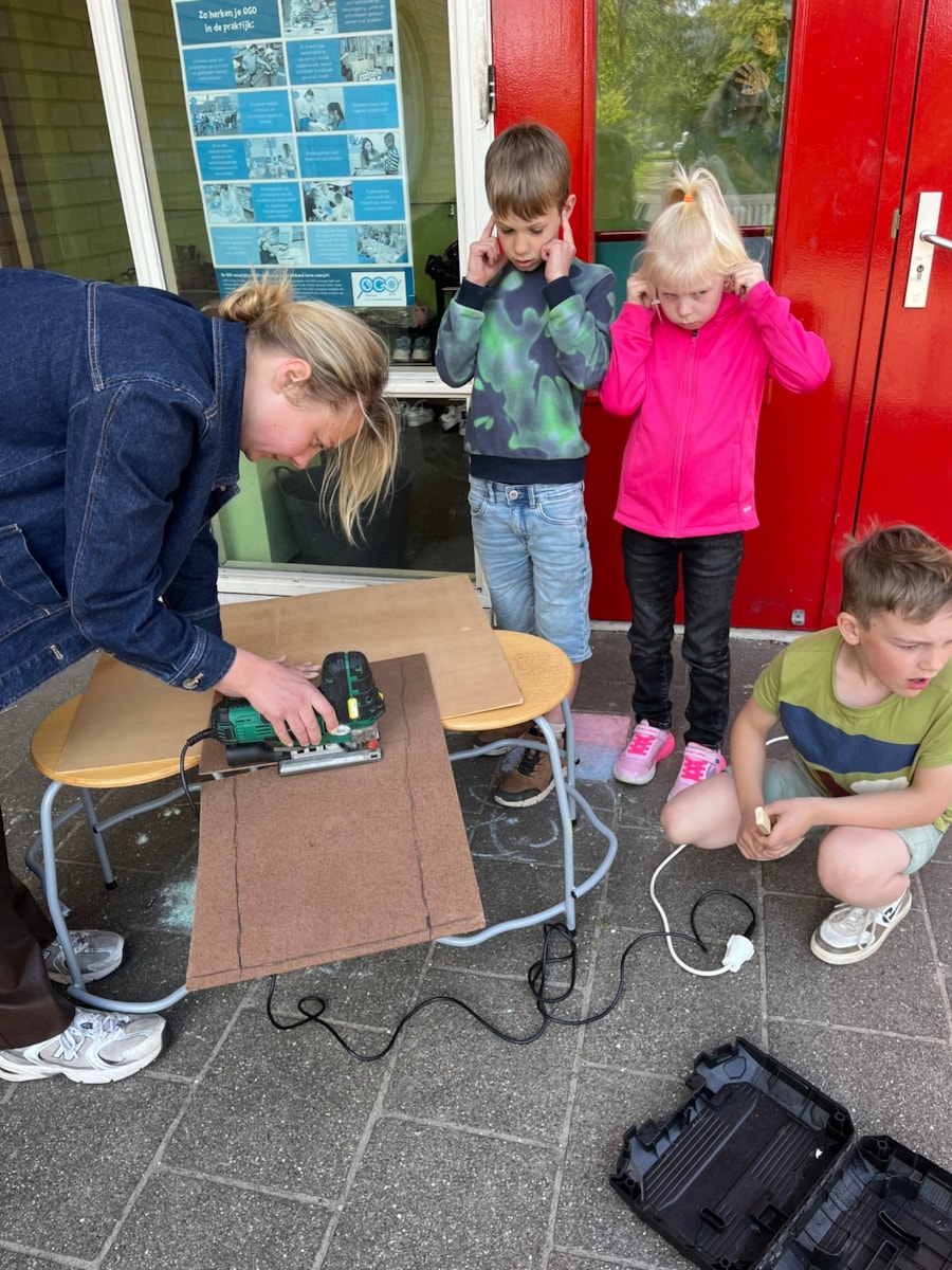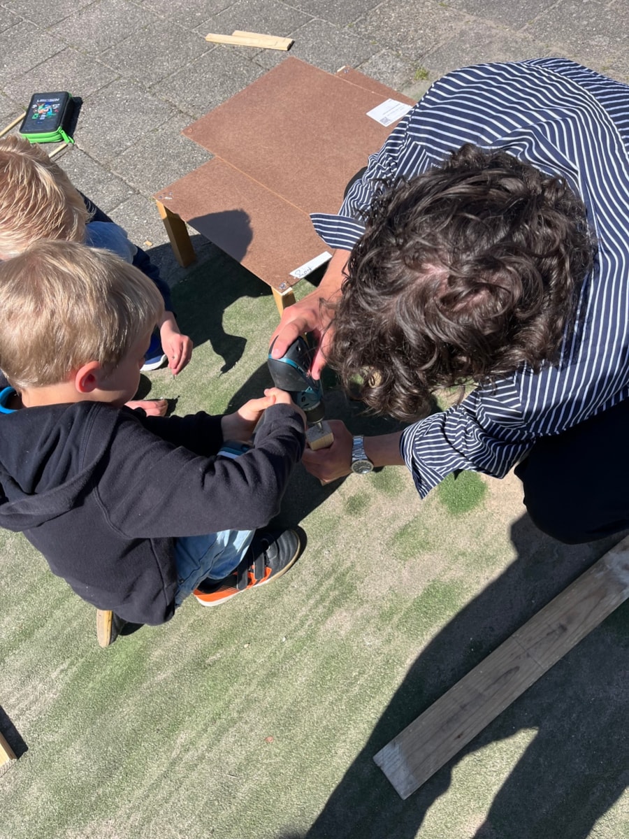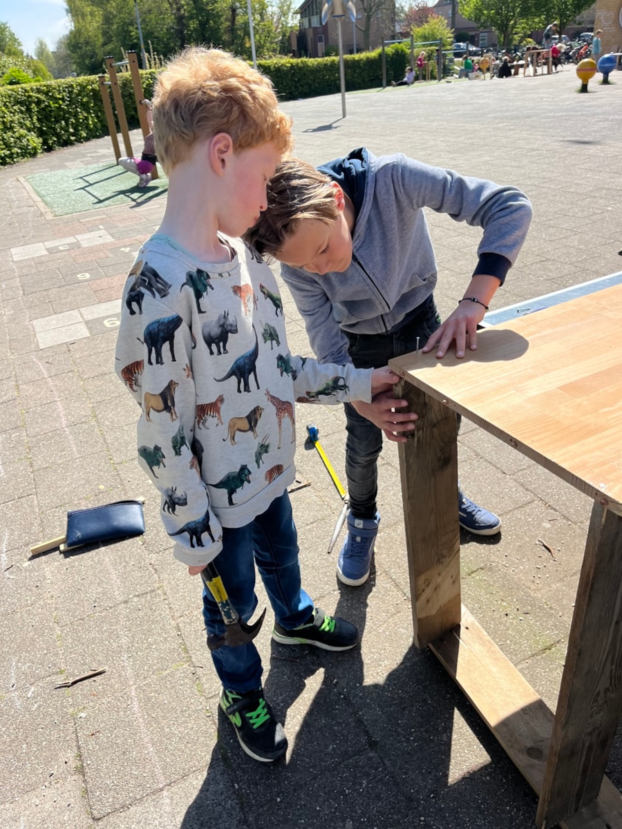 Wij hebben deze week heerlijk buiten aan de meubels gewerkt! Ze zijn bijna allemaal in elkaar gezet. Na de vakantie gaan we stofferen en schilderen. En dinsdag gingen we natuurlijk met de trein op bezoek bij het HMC! Dat was heel leuk en leerzaam.