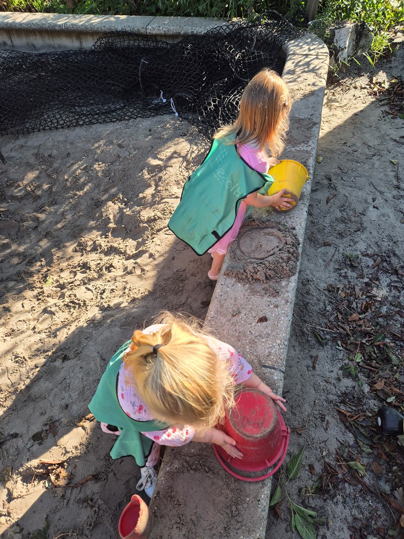 Na dagen met veel regen toch nog even genoten van een heerlijke zonnige dag. Er worden heel veel taarten gebakken in de zandbak: slagroomtaarten, chocoladetaarten en appeltaarten. Verder hebben we deze week het erg druk met optreden en knutselen in het feestthema!